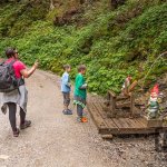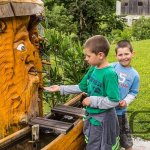 Ezen a napon a Märchenwandermeile meseutat fogjuk végigjárni, szokás szerint korán kelés, reggelizés (ki-ki magának válogatta össze a reggelijét, pl. többféle felvágott és sajt, különböző ízesítésű túrókrém, vaj, tojás, müzli, lekvárok, csokikrém, péksütemény, lehetett pirítani kenyeret, elkészíthettük a saját reggeli italunkat). Egy asztalra elő voltak készítve a “lunch box” kellékei: csomagolópapír, tasak, szalvéta; ebbe csomagoltunk útravalót. A névre szóló Karintia kártyánkat elvettük a recepciós lánytól, 15 perces játszótéri szaladgálás megvolt a gyerekek részéről, irány… Trebesing.