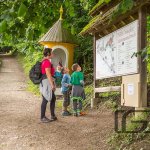 Ausztriában az első felfedező utunk Trebesingbe vezetett. Mivel ez a meseút nem körút (nem oda érünk vissza ahonnan elindulunk), ezért érdemes az autót a város bejáratánál kialakított parkolóban hagyni. Ezután felkerestük az információs irodát, ami nem messze van a parkolótól. Itt lehet jegyet vásárolni, de mivel nekünk volt Karintia kártyánk, ezért a belépő ingyenes volt és csak öntapadós pontokat kaptunk, amit a pólónkra kellett ráragasszunk, ugyanitt lehet jegyet váltani a taca-tuca traktórra ami elvisz a meseút bejáratához, majd a meseút végétől visszavisz az információs iroda elé. Mi úgy döntöttünk, hogy elég lesz nekünk egy térkép és gyalog fogjuk végigjárni (utólag nézve jó döntés volt).