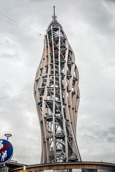 A következő állomásunk a Wörth-i tó déli partján levő Pyramidenkogel kilátó, ami Keutschach am See felől közelíthető meg. A Minimundustól úgy 15 km-re levő kilátó kb. 25 perc alatt érhető el. Karintia kártyával a belépő ingyenes. Szerencsénkre az eső is elvonult, az idő kezdett kitisztulni, úgyhogy csodálatos 360 fokos panoráma tárult elénk. A kilátó tetejére lifttel, vagy akár gyalog is fel lehet jutni, lefelé a bátrabbak az Európa legmagasabb fedett alumínium csúszdáját is kipróbálhatják ami 52 méteres magasságból 120 méter hosszan körbe-körbe csavarodik lefelé. Mi erre nem voltunk elég bátrak. A kilátó mellett játszótér fogadja a gyerekeket.